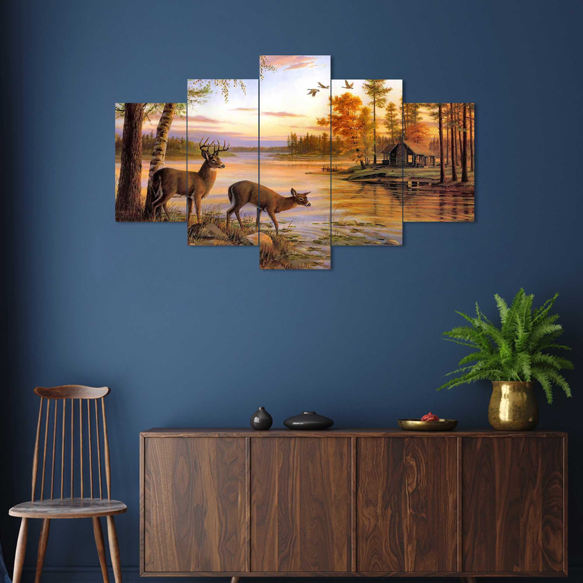 Nature Set of Five 3D Framed Paintings for Wall Decoration – Ideal for Home, Living Room, and Bedroom (125 x 60 CM)